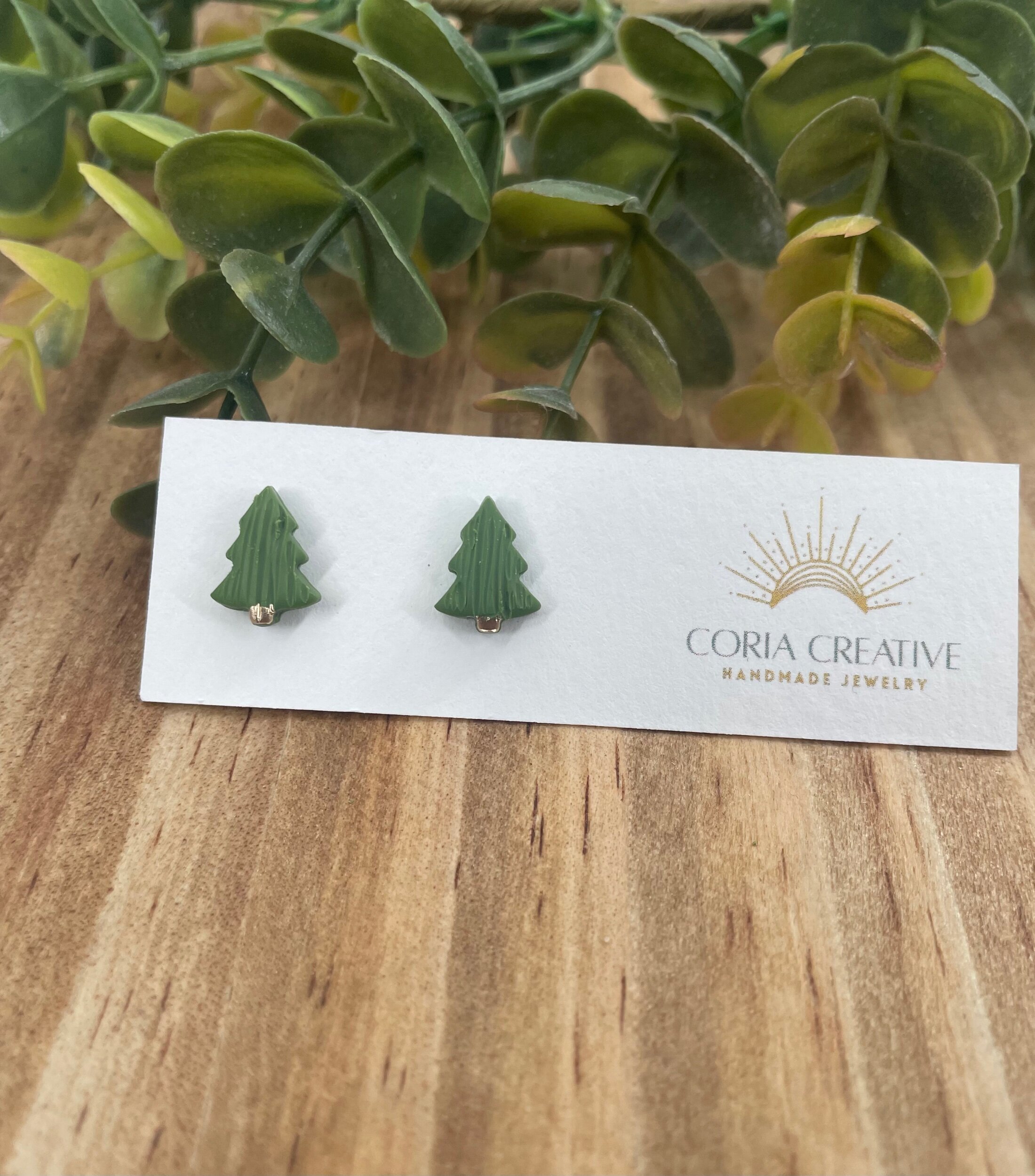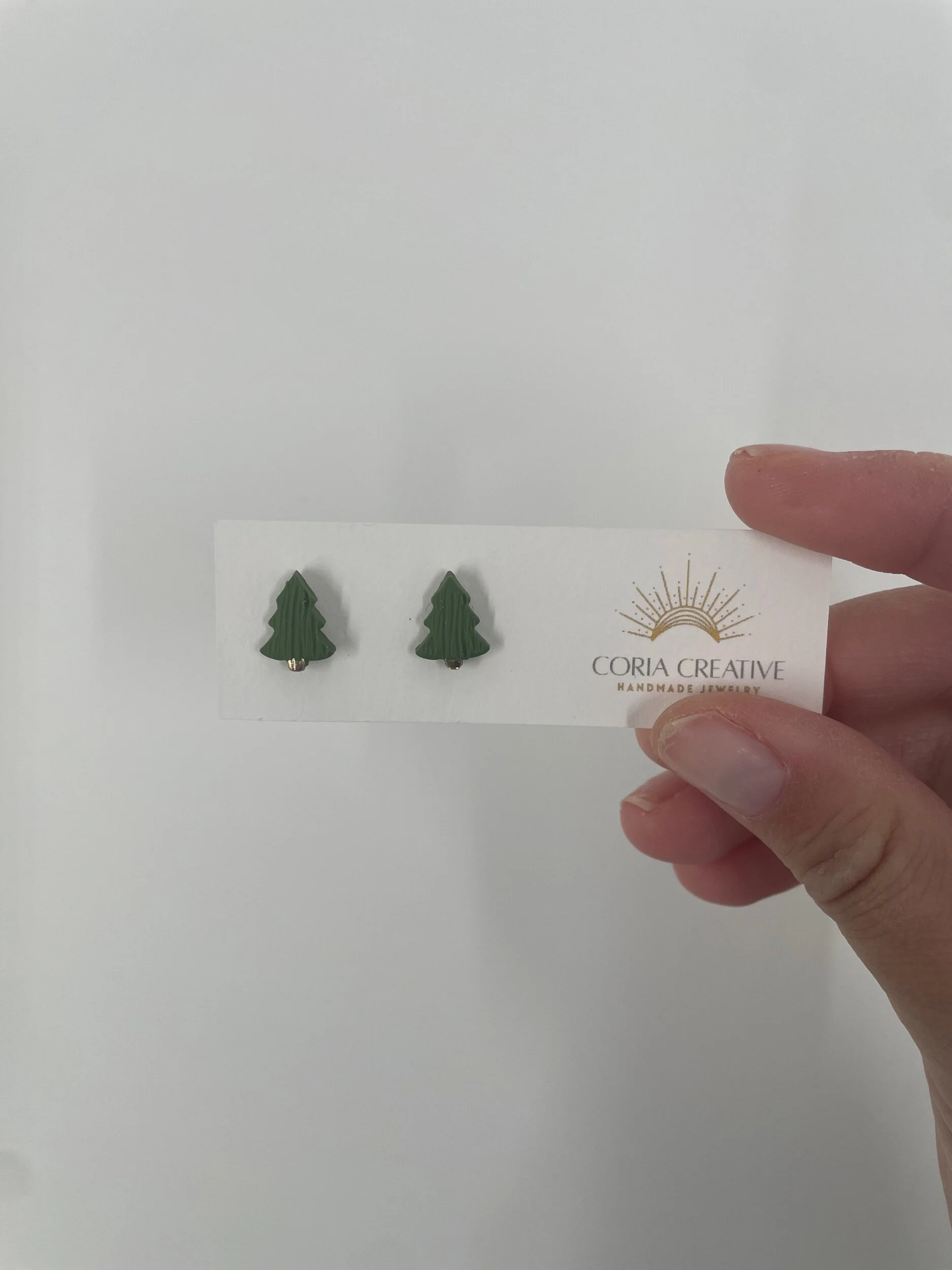 Each stud has a hypoallergenic gold plated earring post and backing. Christmas tree is made of polymer clay, with hand painted gold accent. (about .5in)